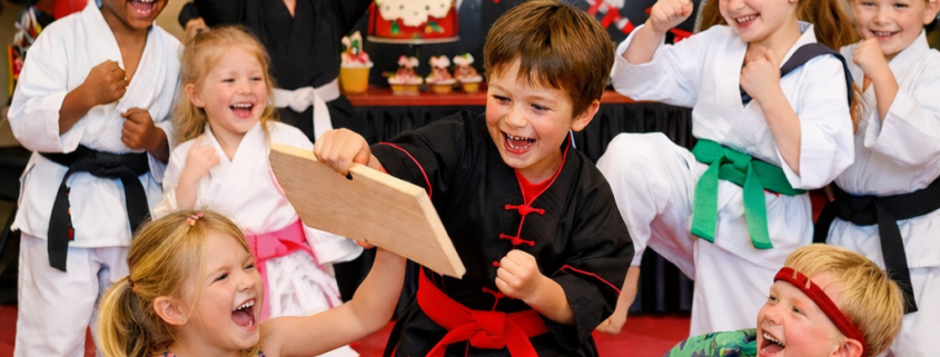 One of the most memorable moments of a martial arts birthday party is the board breaking experience.